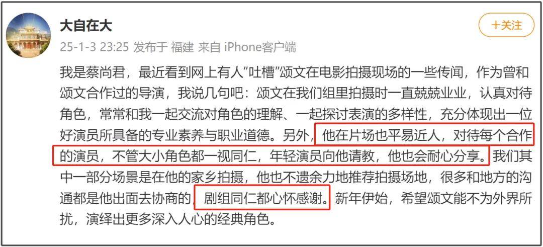 当时张颂文塌房,《日掛中天》导演还发文力挺,澄清说张颂文在片场平易近人,常和他讨论交流,年轻演员也向他请教,因为场地协调问题,剧组同仁都心怀感谢。