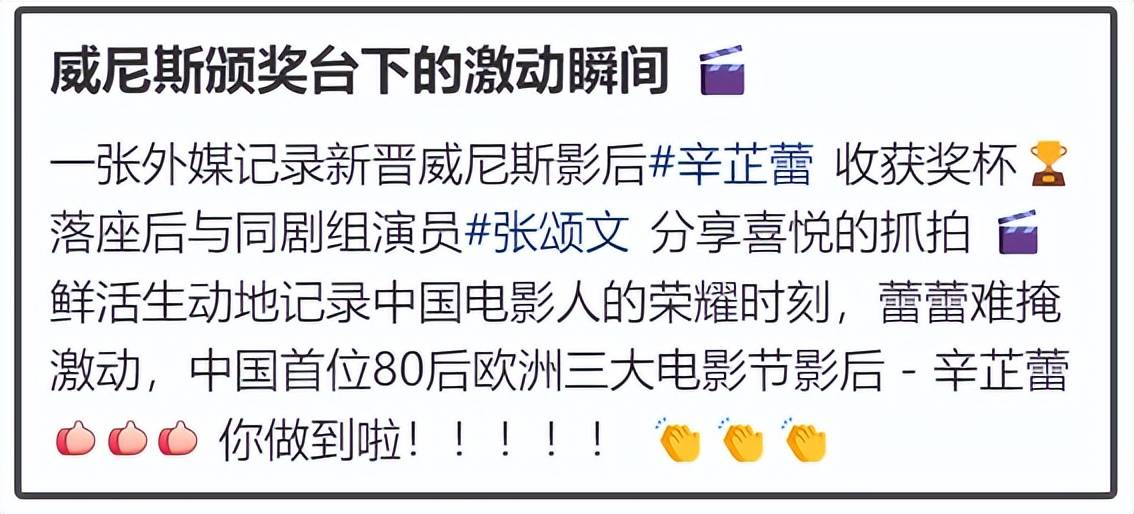 前排恭喜辛芷蕾拿下威尼斯电影节影后!德恒财富