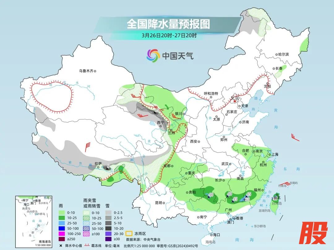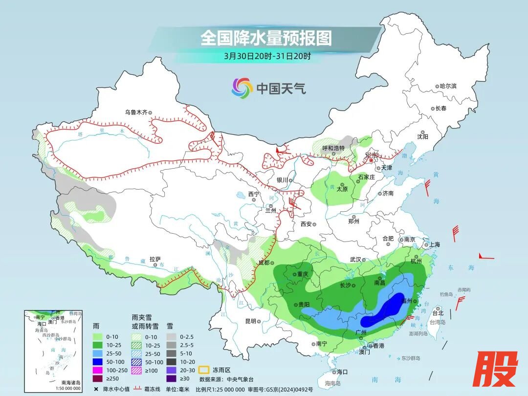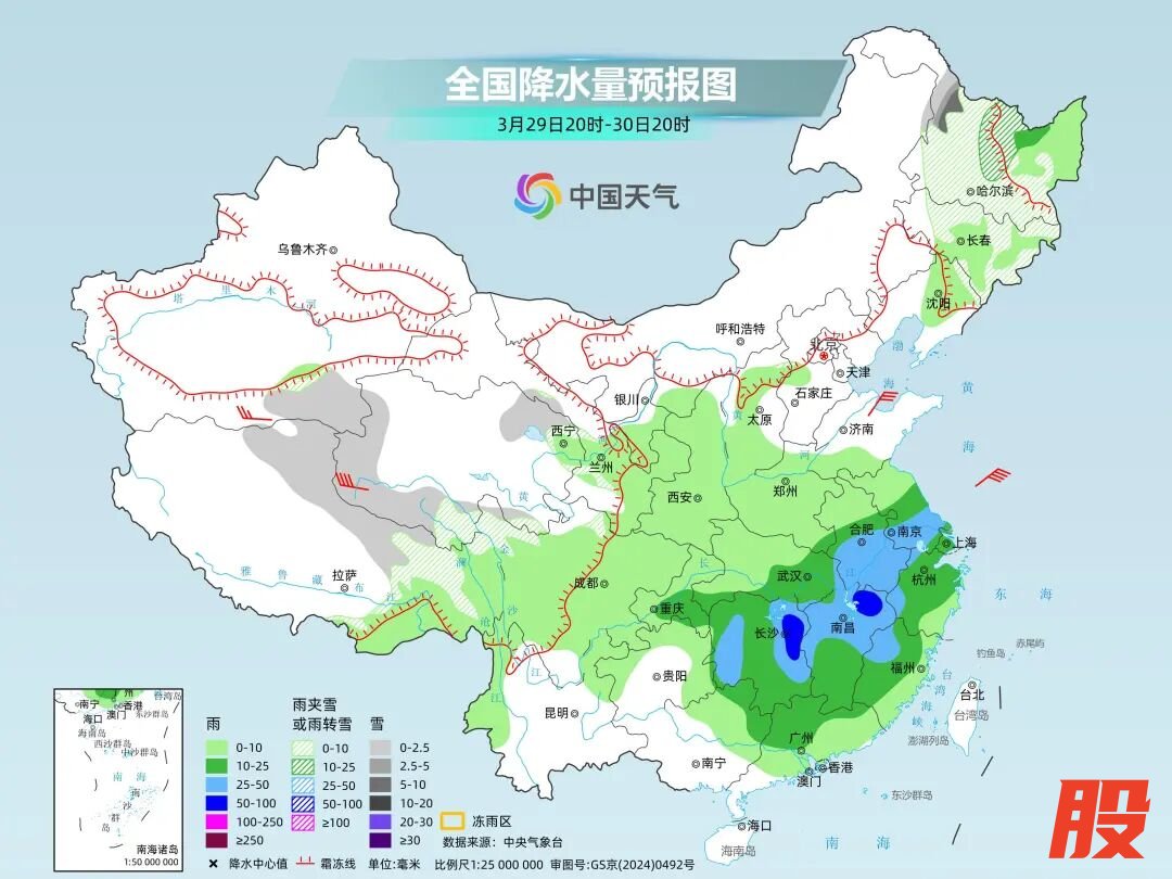 具体来看,中央气象台预计,今天,西藏东南部、重庆西部、贵州东部和南部、湖南西部和南部、江西南部、广西北部、广东北部、福建南部等地部分地区有中到大雨,其中,湖南西南部、广西东北部、江西南部等地局地有暴雨。