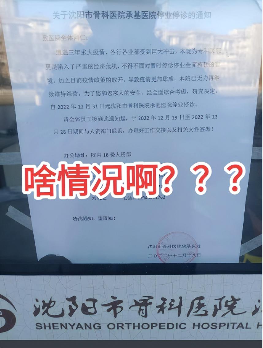 当时流出的官方停业通知称,受三年重大疫情影响,该院作为专科医院遭遇严重经济危机,不得不自2022年12月31日起停业停诊。通知中写道:“政策放开后疫情更加肆虐,本院已无力继续维持经营。”